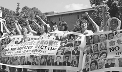 日本共産党の吉井英勝衆院議員が「1930年代から政府は調査によってアスベストの危険性を知っていました。危険な製造をやめるべきだった。不作為の責任は重大で、全面的に賠償すべきです」とあいさつしました。
